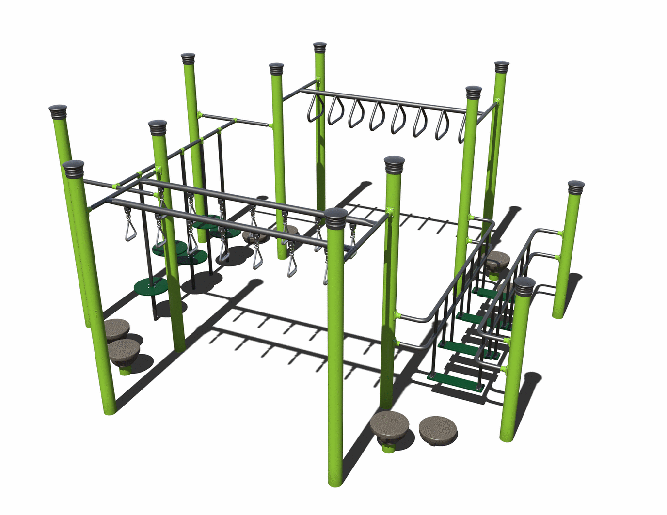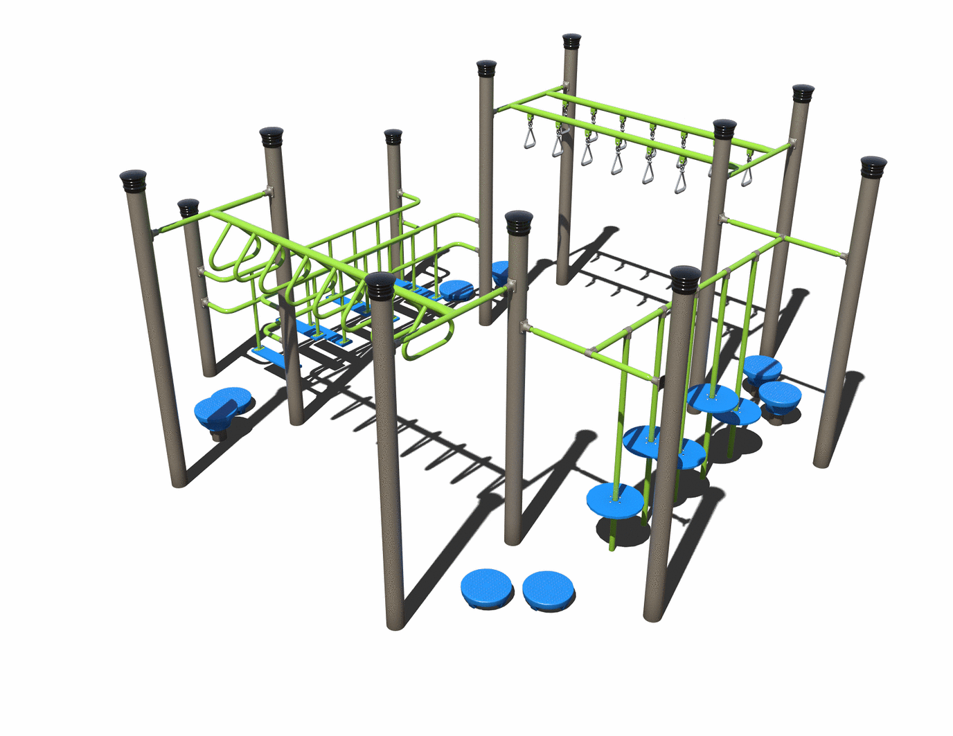 The Challenger Course is built for kids who love action, movement, and a good test of skill. With overhead ladders, swinging grips, balance pods, and climbing steps, it creates a mini obstacle course that keeps children pushing their limits. Perfect for building upper-body strength, coordination, and confidence, this structure delivers nonstop energy and excitement—whether kids are racing through or taking on each challenge at their own pace.