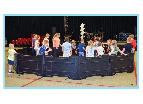 The GaGa2Go Ball Pit provides students with excellent indoor or outdoor exercise and fun. This kit includes 16 border panels that easily interlock to create a 20-foot pit. Assembly is fast and easy; no hardware is needed. It features durable recycled plastic construction that is lightweight so kids can assist with setup and storage. Panels nest when stacked to take up minimal space in your school, church, camp, or recreation facility. The GaGa2Go Ball Pit is made in the USA.