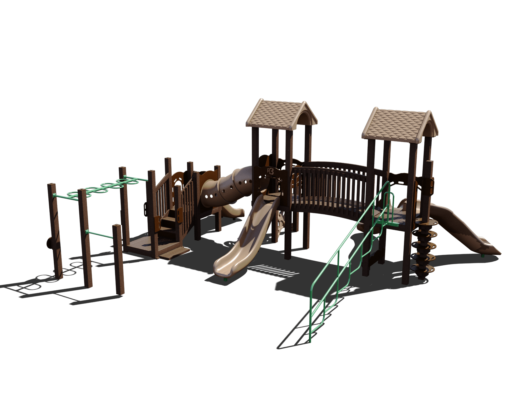 Playgrounds are custom manufactured and ship in 14 to 16 weeks.