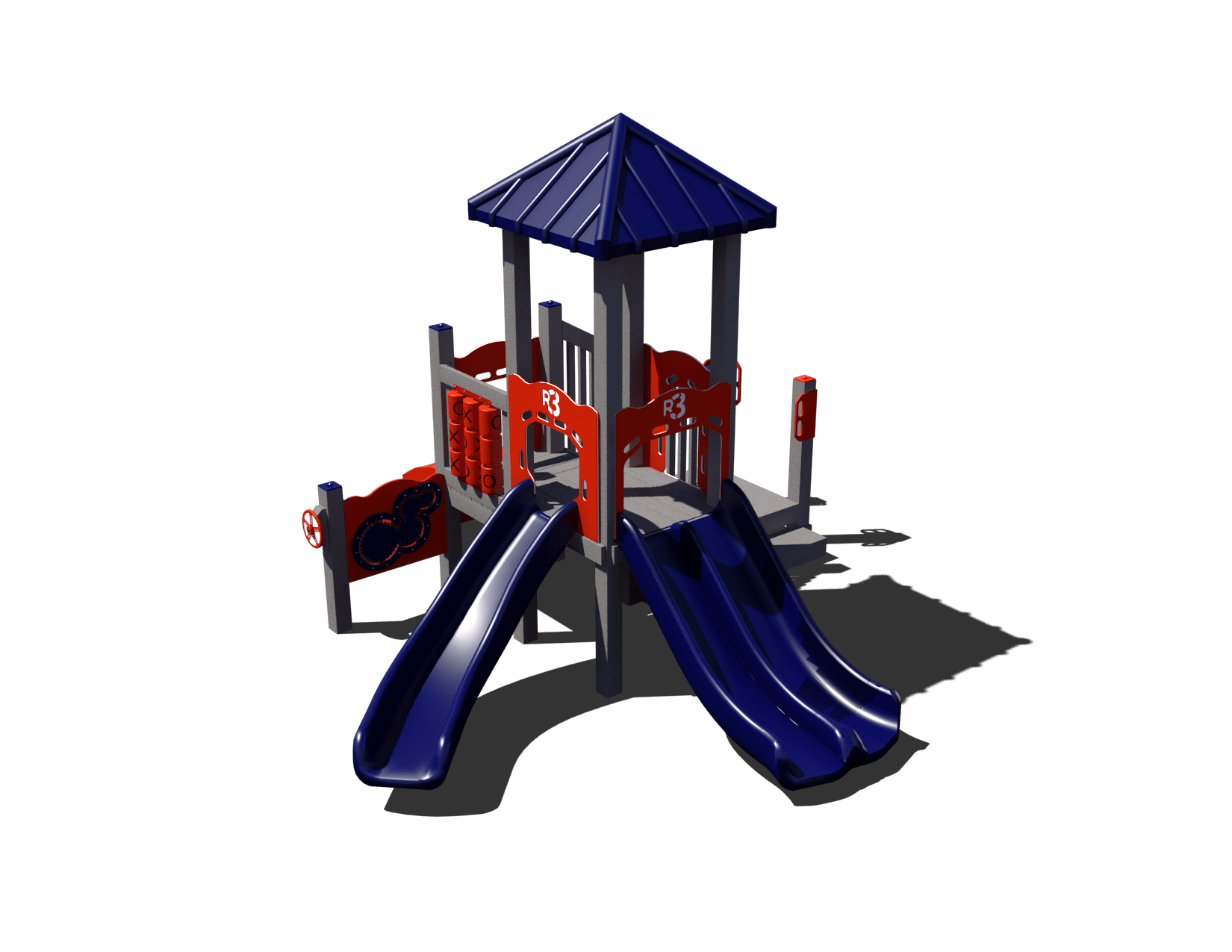 The Legends Adventure playground is perfect for children at your camp, day care, school, or park who want a fun and challenging playground to explore. The bedrock climber provides a challenging physical experience, while the ADA transfer station makes it easy for kids of all abilities to join in the fun. The 24 inch transitional stair unit ensures safe passage between playground features, and the double chute slide provides a thrilling ride down. With its square ridge roof, post mount steering wheel, and curved chute slide, the Legends Adventure playground is sure to provide hours of entertainment for children of all ages!