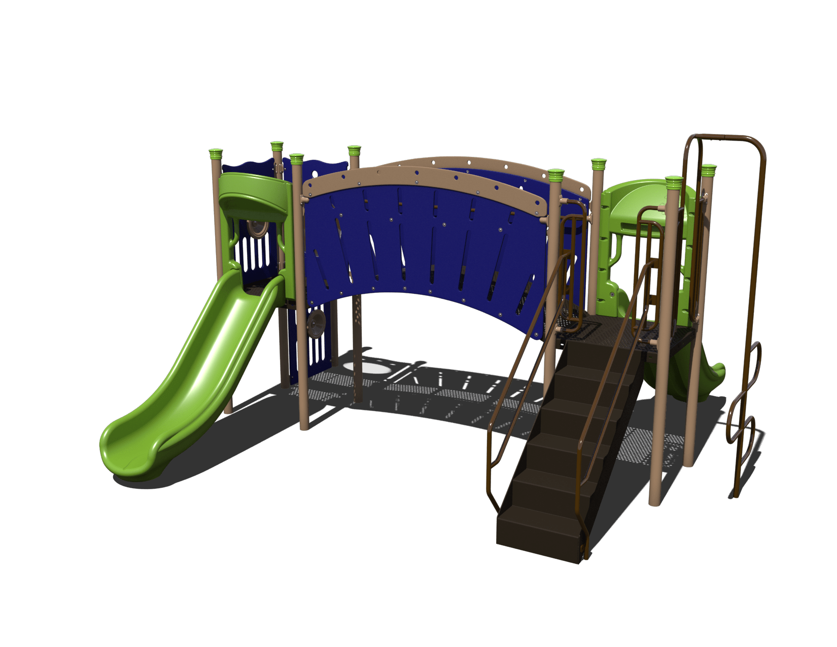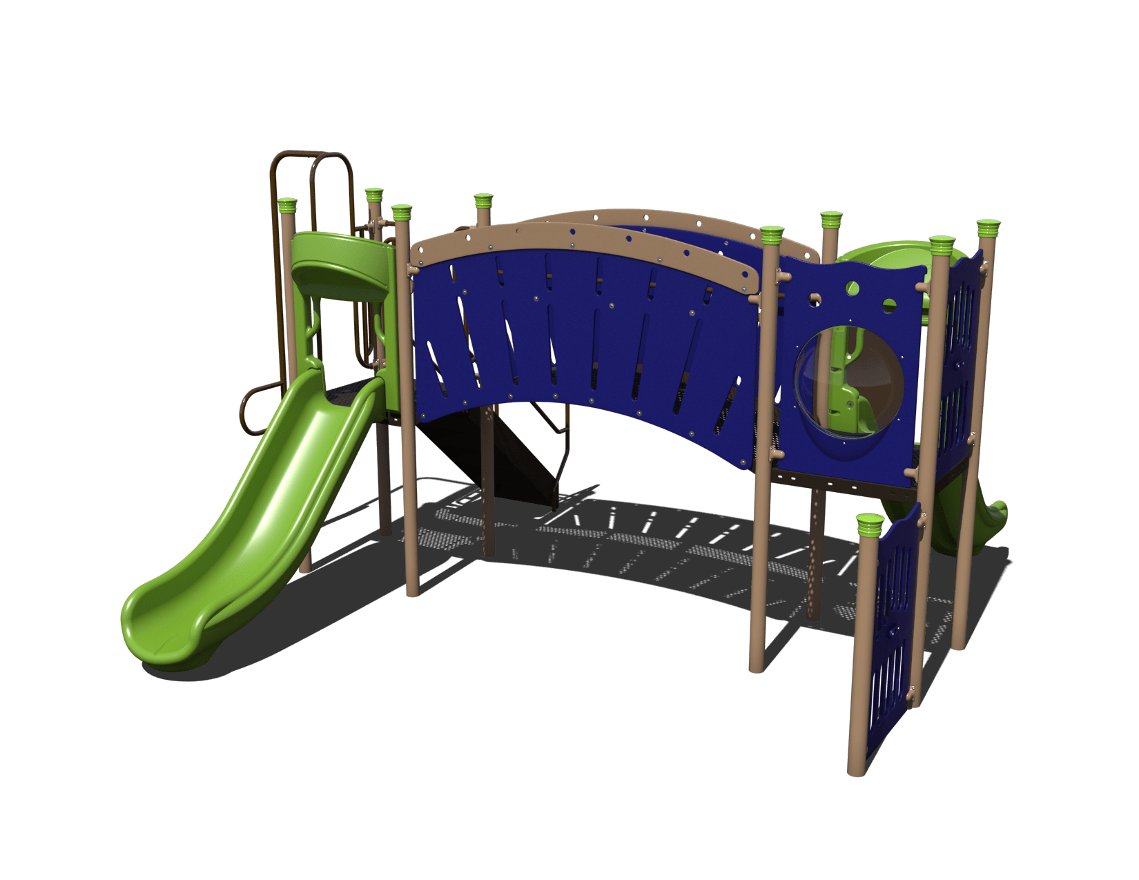 What kid wouldn't love a playground like this? With two straight slides, a stair unit, an arch bridge, and a bubble panel, they'll have hours of fun. And if that's not enough, there are also two driving panels and a tree climber. Your school, church, park, or camp will be the talk of the town with the London Bridge Playground!